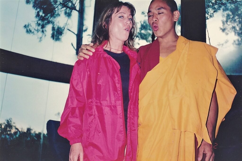 A Buddhist monk shares a lighthearted, playful moment with Silvia Polivoy, reminding us that joy and laughter are also part of the spiritual path at the heart of Spirit Vine’s mission.